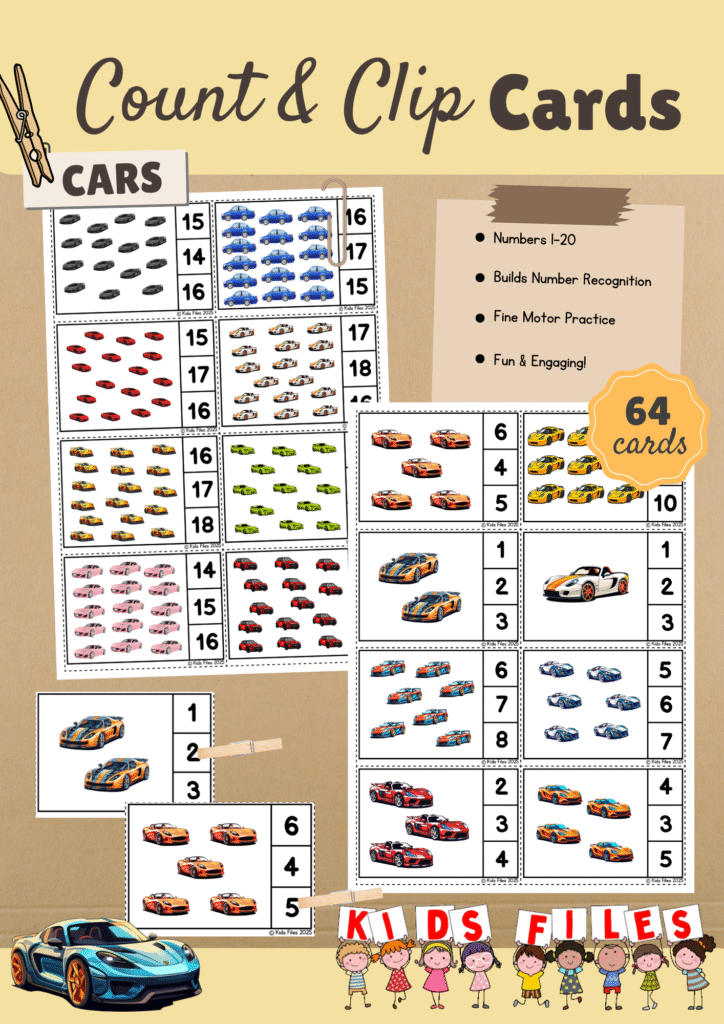 Clip cards are perfect for centers, small groups, or at home practice. They support fine motor skills and number recognition simultaneously.
