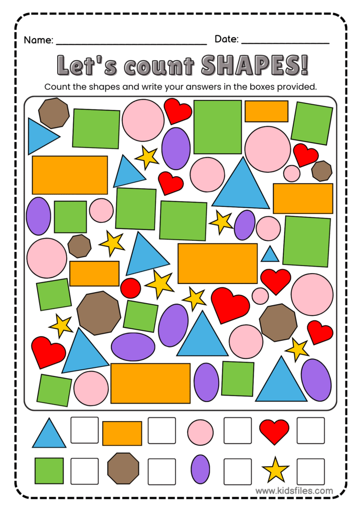 Before children begin working with numbers, shapes help build early visual and spatial awareness. Our shape worksheets introduce: