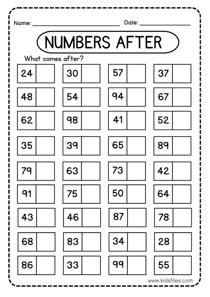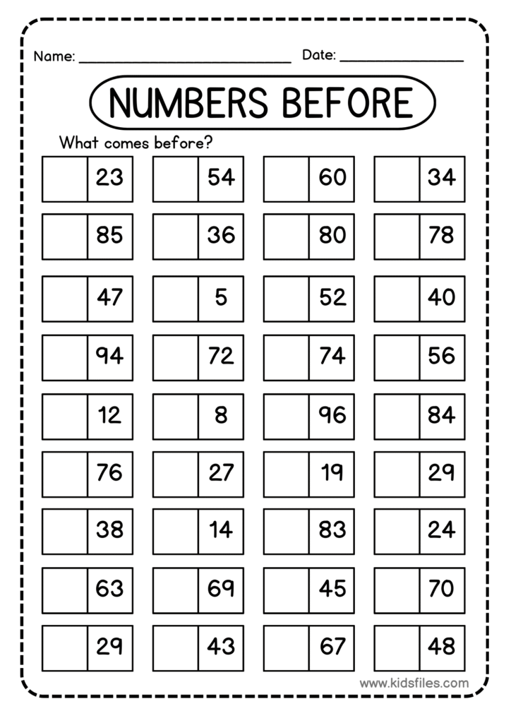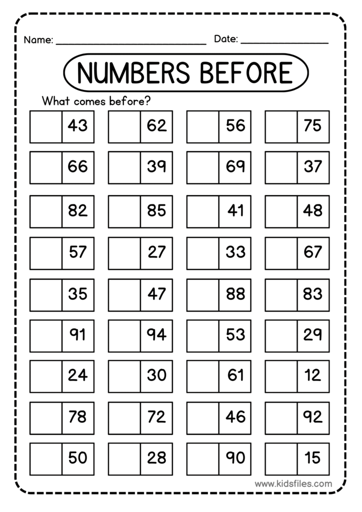 Once children recognize numbers, they can begin to understand number patterns and sequencing. These worksheets cover: