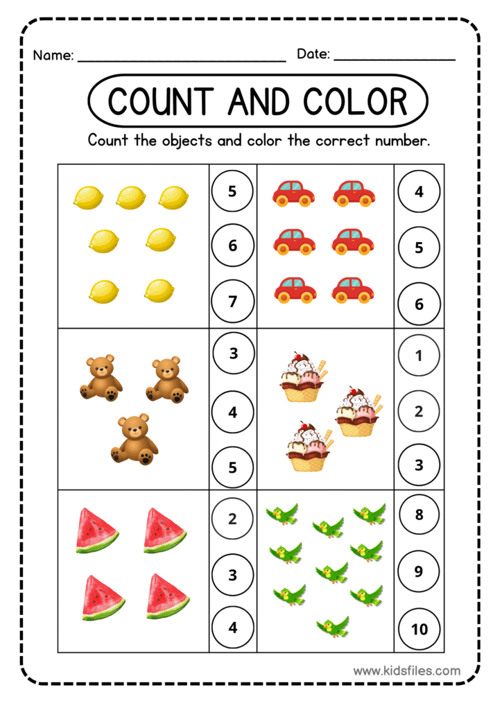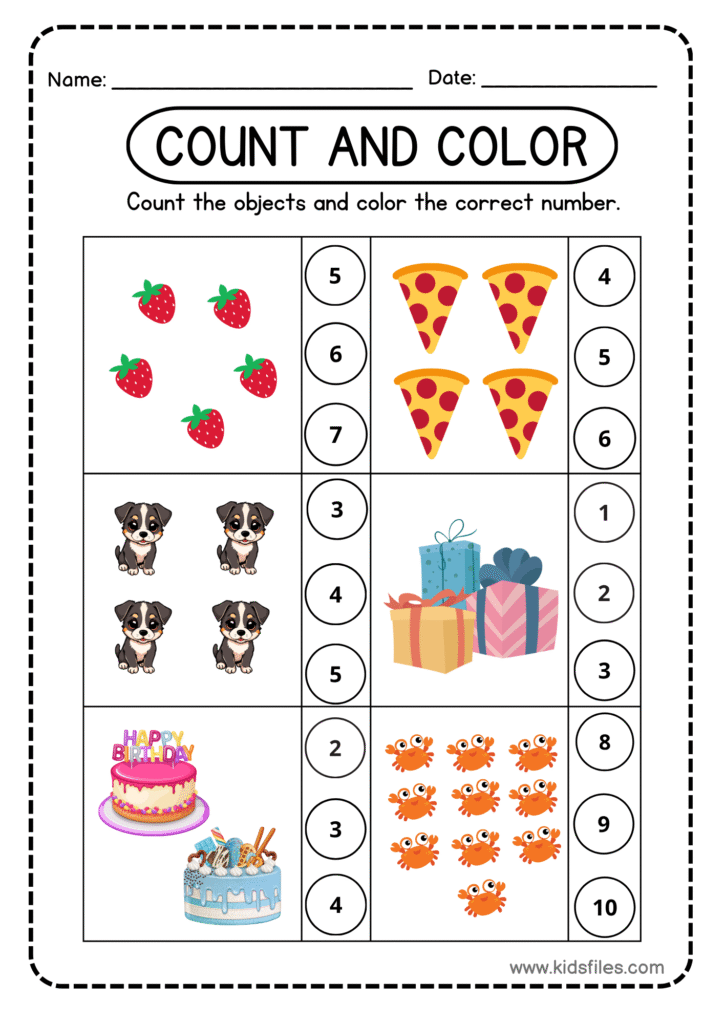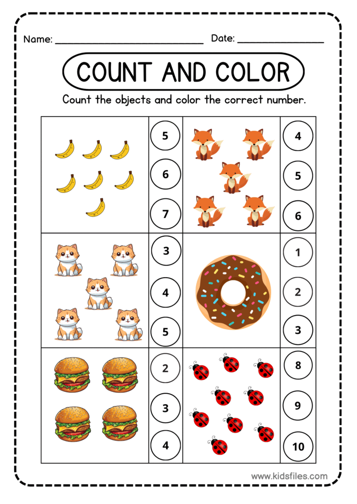 Counting real objects is a key skill for understanding what numbers represent. These worksheets include: